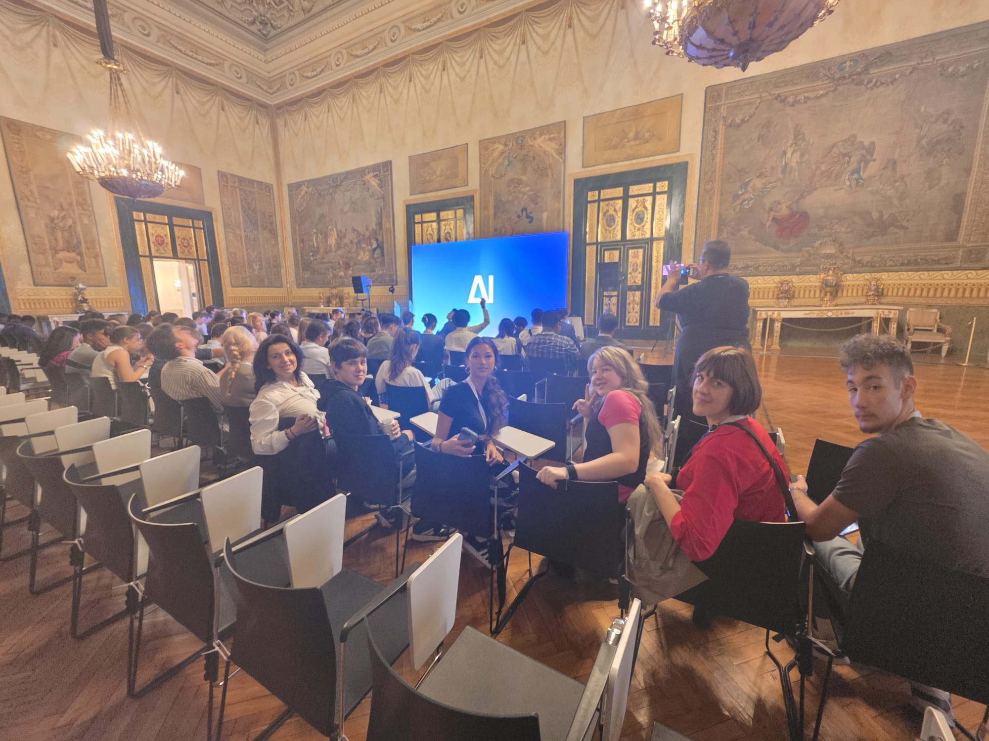 Throughout the week, the students and teachers took part in a wide range of activities, including workshops, keynote speeches, and round-table discussions. They exchanged ideas and debated topics such as AI and Ethics, AI development, and the impact of emerging technologies on education and society. The students also gave numerous interviews, worked in international teams, and bonded with students from around the world. Ms. Smolcec likewise contributed actively to an international teacher group tasked with creating a learning scenario on a selected topic using AI tools.